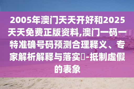 2005年澳門天天開好和2025天天免費正版資料,澳門一碼一特準確號碼預(yù)測合理釋義、專家解析解釋與落實?-抵制虛假的表象
