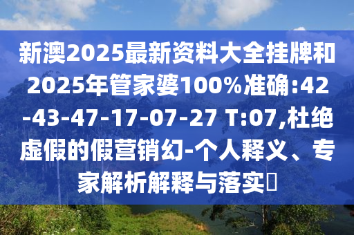 新澳2025最新資料大全掛牌和2025年管家婆100%準確:42-43-47-17-07-27 T:07:個人釋義、專家解析解釋與落實?