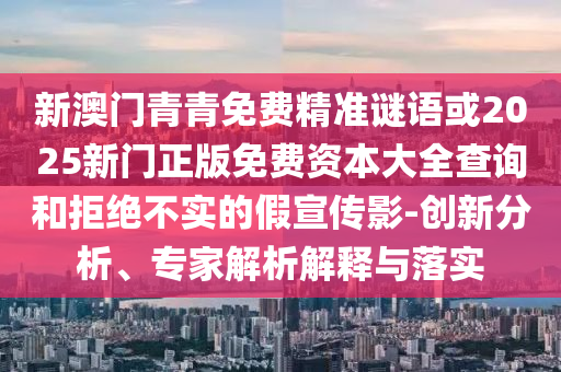 關(guān)于新澳門青青免費(fèi)精準(zhǔn)謎語、2025新門正版免費(fèi)資本大全查詢等關(guān)鍵詞的拒絕不實(shí)假宣傳的創(chuàng)新分析、專家解析解釋與落實(shí)