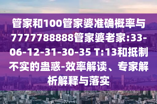 管家和100管家婆準(zhǔn)確概率與7777788888管家婆老家:33-06-12-31-30-35 T:13和抵制不實(shí)的蠱惑-效率解讀、專家解析解釋與落實(shí)