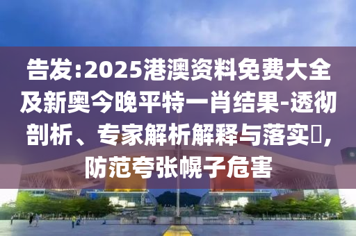 告發(fā):2025港澳資料免費大全及新奧今晚平特一肖結(jié)果-透徹剖析、專家解析解釋與落實?,防范夸張幌子危害