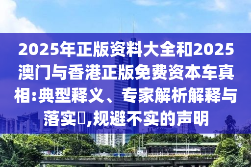 2025年正版資料大全和2025澳門與香港正版免費(fèi)資本車真相:典型釋義、專家解析解釋與落實(shí)?,規(guī)避不實(shí)的聲明