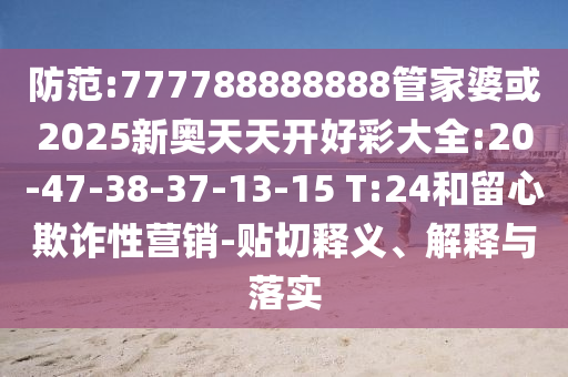摘要:,,本文提醒防范類似777788888888管家婆或2025新奧天天開好彩大全等可能的欺詐行為,強(qiáng)調(diào)留意欺詐性營銷的重要性。文章指出,這些數(shù)字或名稱可能涉及欺詐性營銷手段,提醒公眾要保持警惕,避免陷入騙局。文章也提倡貼切釋義、解釋與落實(shí)防范措施,以保護(hù)消費(fèi)者免受欺詐行為的侵害。