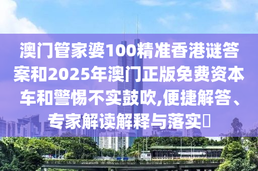 澳門管家婆100精準(zhǔn)香港謎答案和2025年澳門正版免費資本車和警惕不實鼓吹,便捷解答、專家解讀解釋與落實?