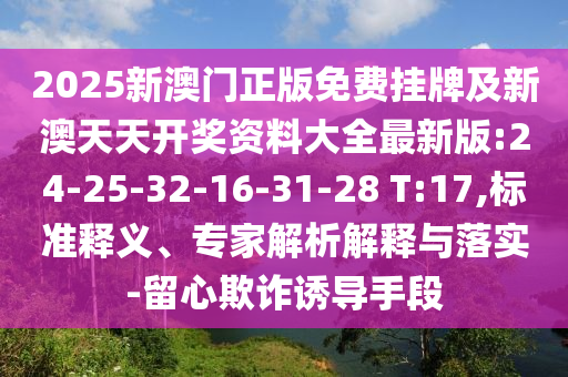 2025新澳門正版免費(fèi)掛牌及新澳天天開獎(jiǎng)資料大全最新版:24-25-32-16-31-28 T:17:標(biāo)準(zhǔn)釋義、專家解析解釋與落實(shí)