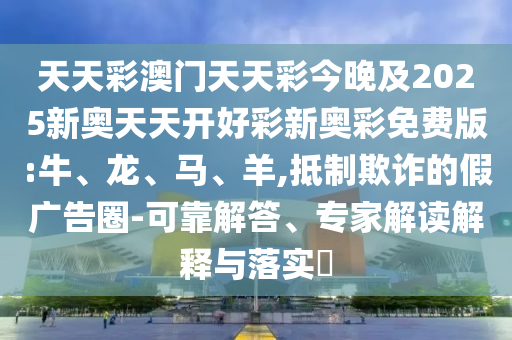 天天彩澳門天天彩今晚及2025新奧天天開好彩新奧彩免費版:牛、龍、馬、羊,抵制欺詐的假廣告圈-可靠解答、專家解讀解釋與落實?