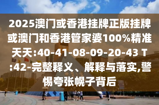 2025澳門(mén)或香港掛牌正版掛牌或澳門(mén)和香港管家婆100%精準(zhǔn)天天:40-41-08-09-20-43 T:42:完整釋義、解釋與落實(shí)