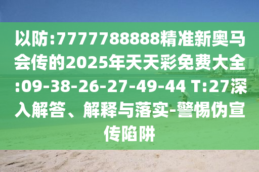 摘要:,,精準(zhǔn)新奧馬會(huì)傳的2025年天天彩免費(fèi)大全”,存在特定的數(shù)字組合如09-38-26-27-49-44等,同時(shí)提醒公眾警惕偽宣傳陷阱。該摘要旨在深入解答、解釋相關(guān)內(nèi)容并確保信息落實(shí),提供真實(shí)有效的信息以供參考。