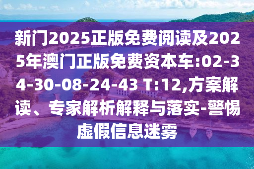 新門2025正版免費閱讀及2025年澳門正版免費資本車:02-34-30-08-24-43 T:12:方案解讀、專家解析解釋與落實