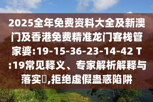 2025全年免費(fèi)資料大全及新澳門及香港免費(fèi)精準(zhǔn)龍門客棧管家婆:19-15-36-23-14-42 T:19常見釋義、專家解析解釋與落實(shí)?,拒絕虛假蠱惑陷阱