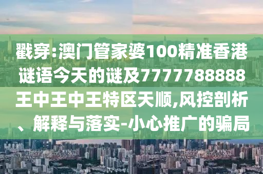 戳穿:澳門管家婆100精準(zhǔn)香港謎語(yǔ)今天的謎及7777788888王中王中王特區(qū)天順,風(fēng)控剖析、解釋與落實(shí)-小心推廣的騙局