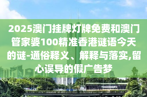 2025澳門掛牌燈牌免費(fèi)”、“澳門管家婆100精準(zhǔn)香港謎語今天的謎”、“留心誤導(dǎo)的假廣告夢(mèng)”的通俗釋義、解釋與落實(shí)