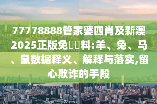 摘要:,,本文提供關(guān)于77778888管家婆四肖及新澳2025正版免費資料的摘要,包括羊、兔、馬、鼠的數(shù)據(jù)釋義、解釋與落實。提醒讀者在關(guān)注這些資料時,要留心欺詐手段,避免上當(dāng)受騙。文章內(nèi)容簡短明了,提醒讀者謹(jǐn)慎對待此類資料,理性參與相關(guān)活動。