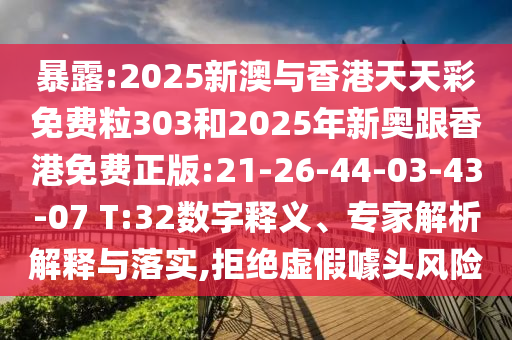暴露:2025新澳與香港天天彩免費(fèi)粒303和2025年新奧跟香港免費(fèi)正版:21-26-44-03-43-07 T:32數(shù)字釋義、專家解析解釋與落實(shí),拒絕虛假噱頭風(fēng)險(xiǎn)