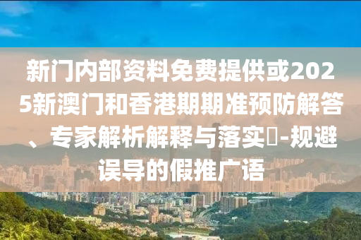 新門內(nèi)部資料免費提供或2025新澳門和香港期期準(zhǔn)預(yù)防解答、專家解析解釋與落實?-規(guī)避誤導(dǎo)的假推廣語
