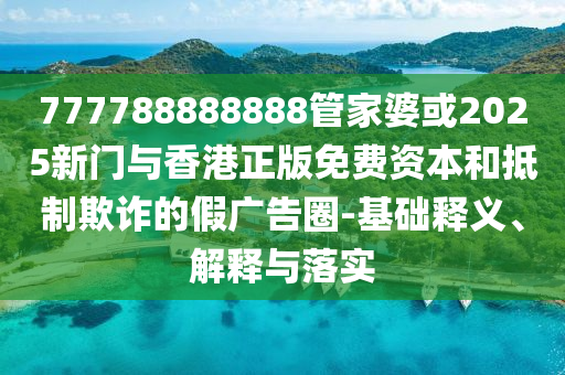 關(guān)于關(guān)鍵詞“777788888888管家婆或2025新門與香港正版免費(fèi)資本基礎(chǔ)”的釋義、解釋與落實(shí),以及抵制欺詐的假廣告圈的文章