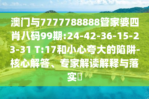 澳門與7777788888管家婆四肖八碼99期:24-42-36-15-23-31 T:17的核心解答、專家解讀解釋與落實?