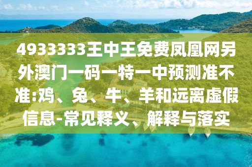 關(guān)于關(guān)鍵詞“披露:4933333王中王免費鳳凰網(wǎng)另外澳門一碼一特一中預(yù)測準不準:雞、兔、牛、羊”的常見釋義、解釋與落實,以及遠離虛假宣傳的警示,以下是我的理解和解釋。