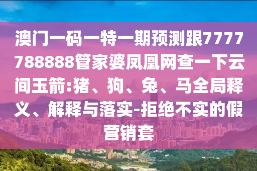 關(guān)于澳門一碼一特一期預(yù)測(cè)、7777788888管家婆鳳凰網(wǎng)查詢以及云間玉箭中提到的豬、狗、兔、馬等關(guān)鍵詞的全局釋義、解釋與落實(shí),并警惕不實(shí)的假營(yíng)銷套路,以下是我的分析和解讀。