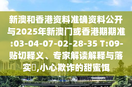 新澳和香港資料準確資料公開與2025年新澳門或香港期期準:03-04-07-02-28-35 T:09:貼切釋義、專家解讀解釋與落實?