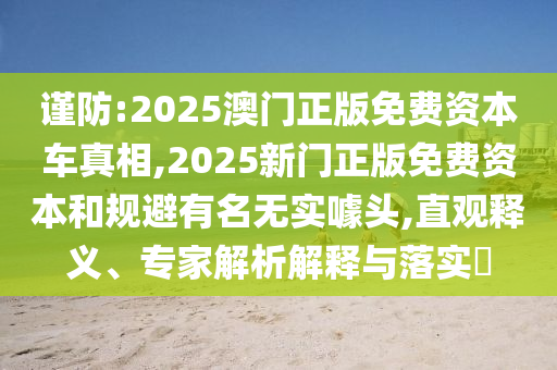 2025澳門正版免費資本車真相,2025新門正版免費資本:直觀釋義、專家解析解釋與落實?