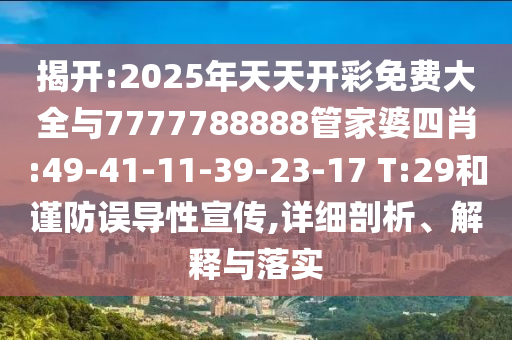 關(guān)于揭開“2025年天天開彩免費(fèi)大全與7777788888管家婆四肖:49-41-11-39-23-17 T:29”的詳細(xì)剖析、解釋與落實(shí),并提醒公眾警惕虛假宣傳