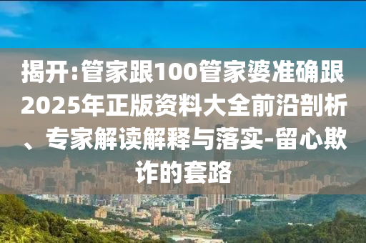 揭開(kāi):管家跟100管家婆準(zhǔn)確跟2025年正版資料大全前沿剖析、專家解讀解釋與落實(shí)-留心欺詐的套路
