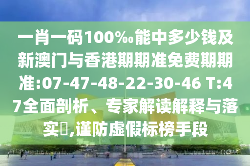 一肖一碼100‰能中多少錢及新澳門與香港期期準(zhǔn)免費(fèi)期期準(zhǔn):07-47-48-22-30-46 T:47全面剖析、專家解讀解釋與落實(shí)?,謹(jǐn)防虛假標(biāo)榜手段