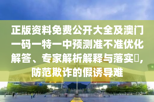 摘要:,,本文介紹了正版資料的免費(fèi)公開(kāi)資源,探討了澳門(mén)一碼一特一中預(yù)測(cè)的準(zhǔn)確性問(wèn)題,并對(duì)此進(jìn)行了優(yōu)化解答。文章還強(qiáng)調(diào)了防范欺詐和假誘導(dǎo)的重要性,通過(guò)專家解析解釋與落實(shí)防范措施,提醒公眾保持警惕,避免受到不良影響。文章內(nèi)容簡(jiǎn)潔明了,旨在為讀者提供有價(jià)值的信息和建議。