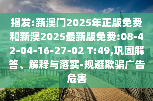 摘要:揭露關(guān)于新澳門2025年正版免費和新澳2025最新版免費的虛假廣告信息,涉及特定號碼如08-42-04-16-27-02。強調(diào)解答、解釋與落實的重要性,提醒公眾提高警惕,避免受到欺騙廣告的侵害。呼吁公眾謹慎對待此類信息,以免遭受損失。
