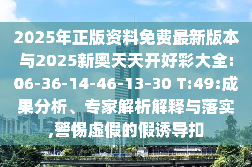 2025年正版資料免費最新版本與2025新奧天天開好彩大全:06-36-14-46-13-30 T:49:成果分析、專家解析解釋與落實,警惕虛假的假誘導扣