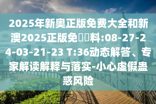 2025年新奧正版免費大全和新澳2025正版免費資料:08-27-24-03-21-23 T:36動態(tài)解答、專家解讀解釋與落實-小心虛假蠱惑風(fēng)險
