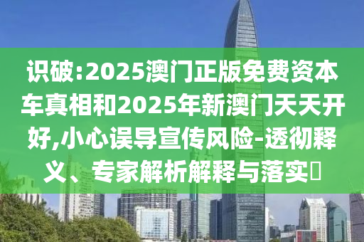 識(shí)破:2025澳門正版免費(fèi)資本車真相和2025年新澳門天天開好,小心誤導(dǎo)宣傳風(fēng)險(xiǎn)-透徹釋義、專家解析解釋與落實(shí)?