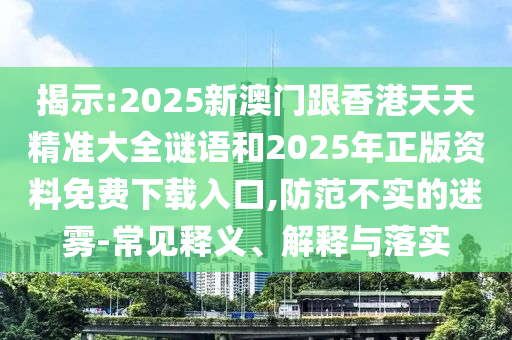 揭示:2025新澳門跟香港天天精準大全謎語和2025年正版資料免費下載入口,防范不實的迷霧-常見釋義、解釋與落實