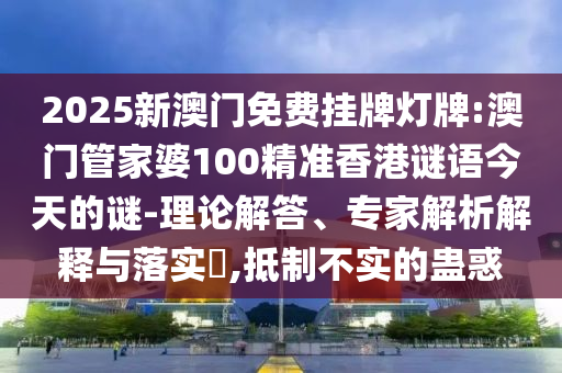 2025新澳門免費(fèi)掛牌燈牌:澳門管家婆100精準(zhǔn)香港謎語今天的謎-理論解答、專家解析解釋與落實(shí)?,抵制不實(shí)的蠱惑