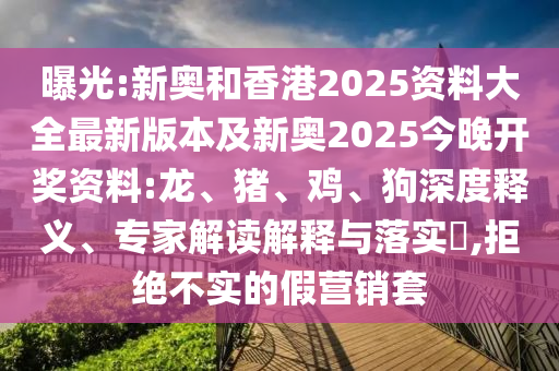 曝光:新奧和香港2025資料大全最新版本及新奧2025今晚開獎(jiǎng)資料:龍、豬、雞、狗深度釋義、專家解讀解釋與落實(shí)?,拒絕不實(shí)的假營銷套