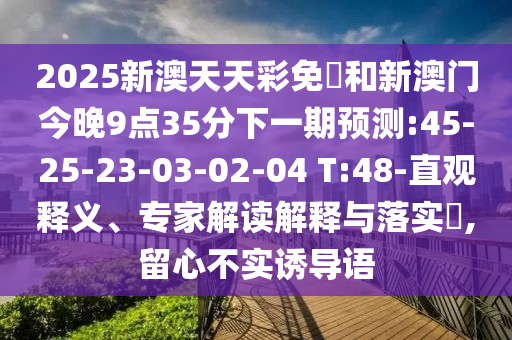 2025新澳天天彩免費(fèi)和新澳門(mén)今晚9點(diǎn)35分下一期預(yù)測(cè):45-25-23-03-02-04 T:48-直觀釋義、專(zhuān)家解讀解釋與落實(shí)?,留心不實(shí)誘導(dǎo)語(yǔ)