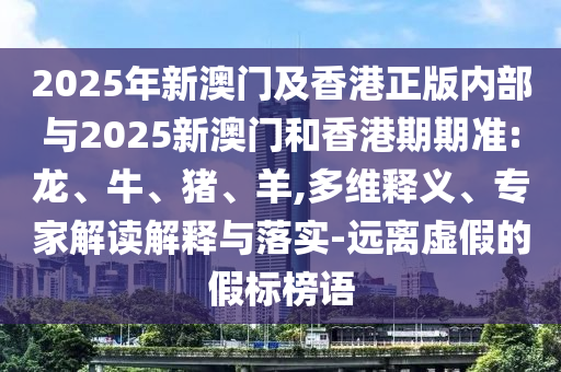 2025年新澳門及香港正版內(nèi)部與2025新澳門和香港期期準(zhǔn):龍、牛、豬、羊,多維釋義、專家解讀解釋與落實(shí)-遠(yuǎn)離虛假的假標(biāo)榜語