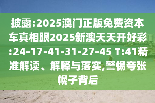 披露:2025澳門正版免費(fèi)資本車真相跟2025新澳天天開好彩:24-17-41-31-27-45 T:41精準(zhǔn)解讀、解釋與落實(shí),警惕夸張幌子背后
