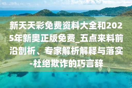 摘要:,,本文介紹了新天天彩免費(fèi)資料大全和2025年新奧正版免費(fèi)的最新信息,通過五點(diǎn)來料前沿剖析、專家解析解釋與落實(shí),旨在為讀者提供真實(shí)可靠的信息資源。同時強(qiáng)調(diào)杜絕欺詐的重要性,提醒公眾保持警惕,避免受到不良信息的侵害。本文旨在傳遞正能量,倡導(dǎo)誠信、公正的社會風(fēng)氣。