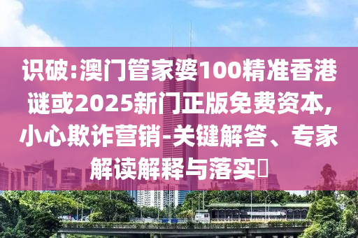 識破:澳門管家婆100精準(zhǔn)香港謎或2025新門正版免費資本,小心欺詐營銷-關(guān)鍵解答、專家解讀解釋與落實?
