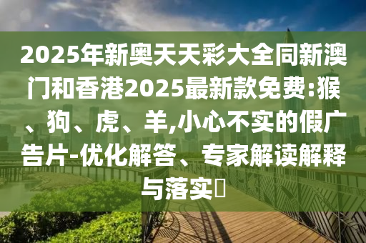 2025年新奧天天彩大全同新澳門和香港2025最新款免費:猴、狗、虎、羊,小心不實的假廣告片-優(yōu)化解答、專家解讀解釋與落實?