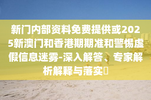 新門內部資料免費提供或2025新澳門和香港期期準和警惕虛假信息迷霧-深入解答、專家解析解釋與落實?