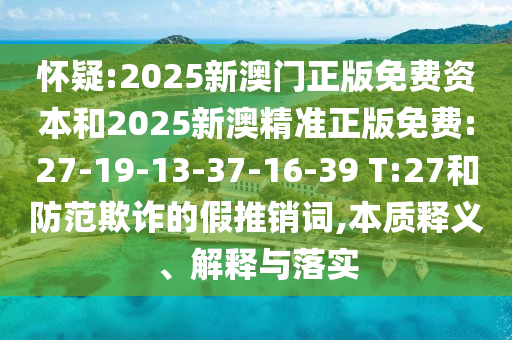 2025新澳門正版免費(fèi)資本”和“2025新澳精準(zhǔn)正版免費(fèi):27-19-13-37-16-39 T:27”等關(guān)鍵詞的本質(zhì)釋義、解釋與落實(shí),以及防范欺詐的假宣傳,以下是我的文章。
