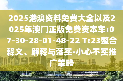 2025港澳資料免費大全以及2025年澳門正版免費資本車:07-30-28-01-48-22 T:23的整合釋義、解釋與落實