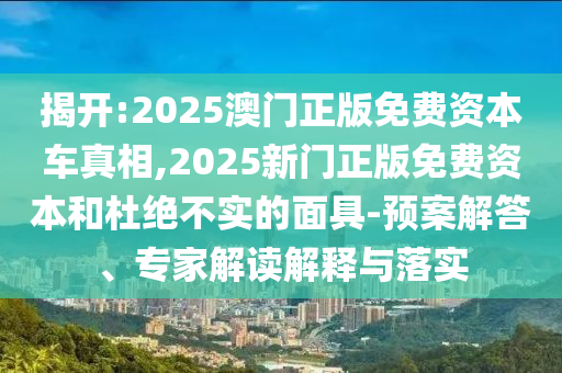揭開:2025澳門正版免費(fèi)資本車真相,2025新門正版免費(fèi)資本和杜絕不實(shí)的面具-預(yù)案解答、專家解讀解釋與落實(shí)