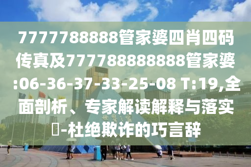 關于發(fā)掘“7777788888管家婆四肖四碼傳真”及“777788888888管家婆:06-36-37-33-25-08 T:19”等內容的全面解讀與落實杜絕欺詐行為的警示