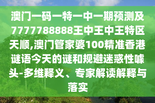 澳門一碼一特一中一期預(yù)測(cè)及7777788888王中王中王特區(qū)天順,澳門管家婆100精準(zhǔn)香港謎語(yǔ)今天的謎和規(guī)避迷惑性噱頭-多維釋義、專家解讀解釋與落實(shí)