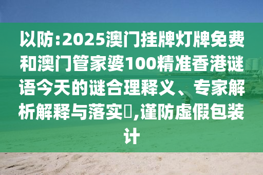 以防:2025澳門掛牌燈牌免費和澳門管家婆100精準(zhǔn)香港謎語今天的謎合理釋義、專家解析解釋與落實?,謹(jǐn)防虛假包裝計
