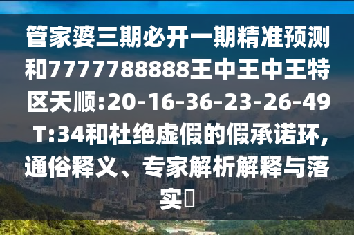 管家婆三期必開一期精準預測和7777788888王中王中王特區(qū)天順:20-16-36-23-26-49 T:34和杜絕虛假的假承諾環(huán),通俗釋義、專家解析解釋與落實?